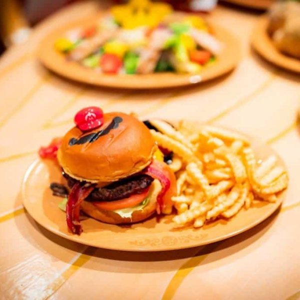 Hamburguesa con champiñones fritos con tocino y papas que te darán los poderes de Mario (Ingredientes: pan, carne, lechuga, jitomate, mayonesa, champiñón, tocino).